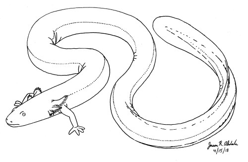 An appropriate modern-day analog for the three-foot long Habrosaurus dilatus is the Greater Siren (Siren lacertina), which also grows to three feet long and is the largest siren species in the world today.
