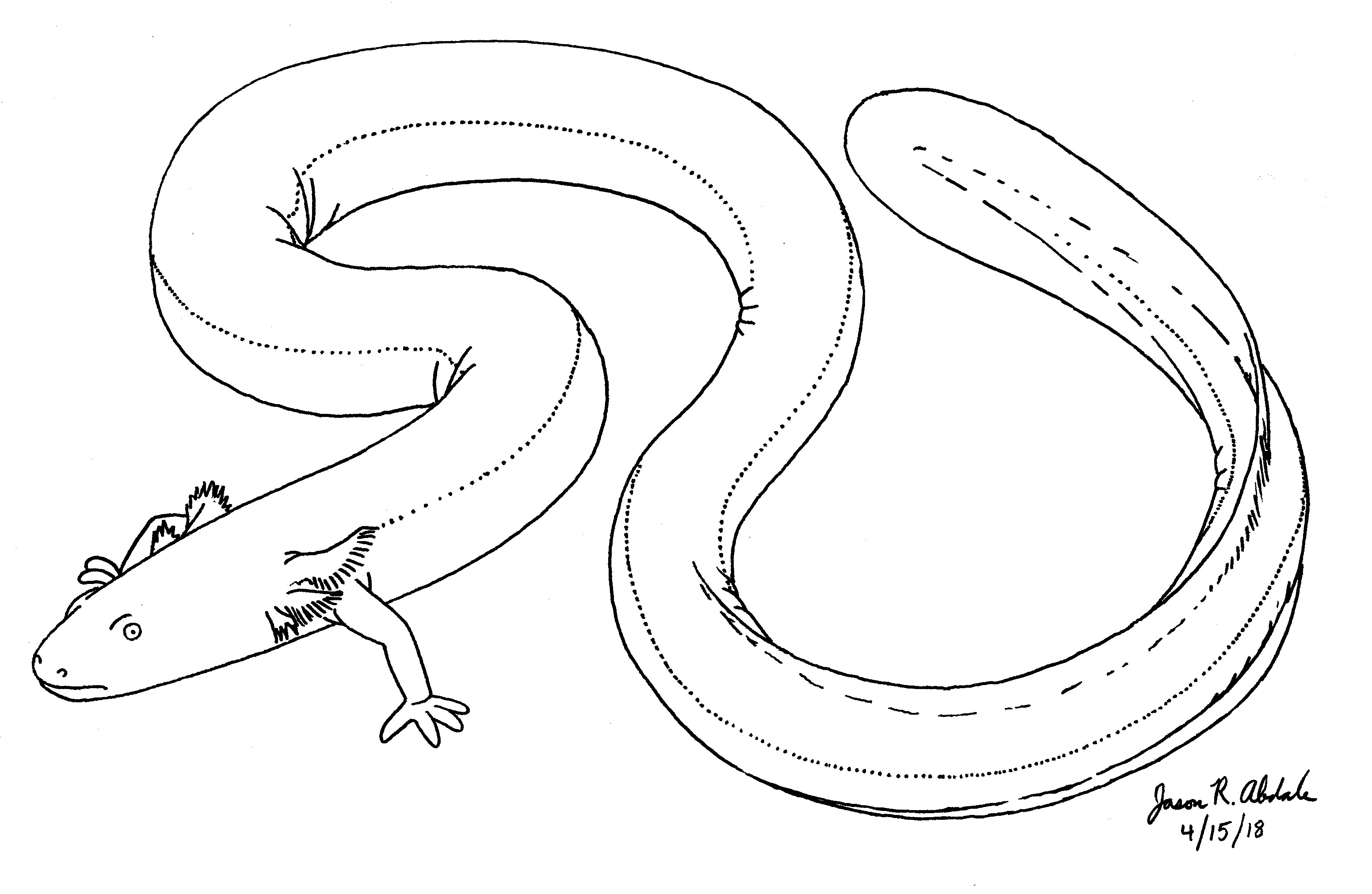 An appropriate modern-day analog for the three-foot long Habrosaurus dilatus is the Greater Siren (Siren lacertina), which also grows to three feet long and is the largest siren species in the world today.