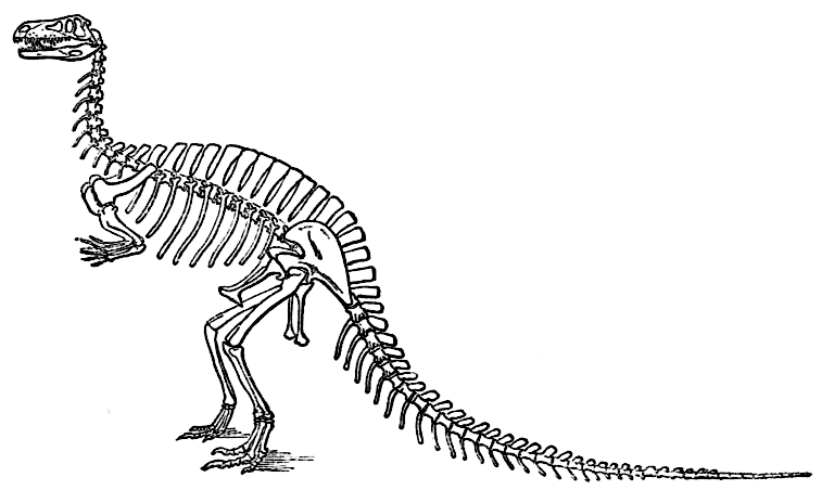 Late 19th Century reconstruction of Megalosaurus by Christian Von Meyer, in which the animal is portrayed with tall neural spines on its dorsal and sacral vertebrae. Illustration from Extinct Monsters, 5th Edition, by Reverend Henry N. Hutchinson. London: Chapman and Hall, 1897. Page 78. https://archive.org/details/extinctmonsters00hutciala.