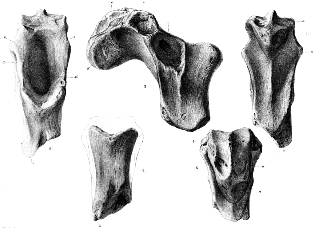 Holotype specimen of Craterosaurus pottonensis, consisting of a partial neural arch from a vertebra. Public domain image, Wikimedia Commons.