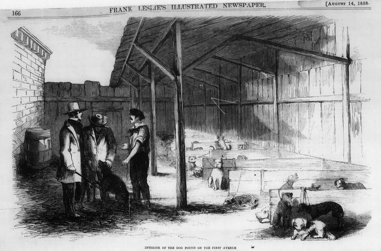 “Interior of the Dog Pound on the First Avenue”. Frank Leslie’s Illustrated Newspaper (August 14, 1858).