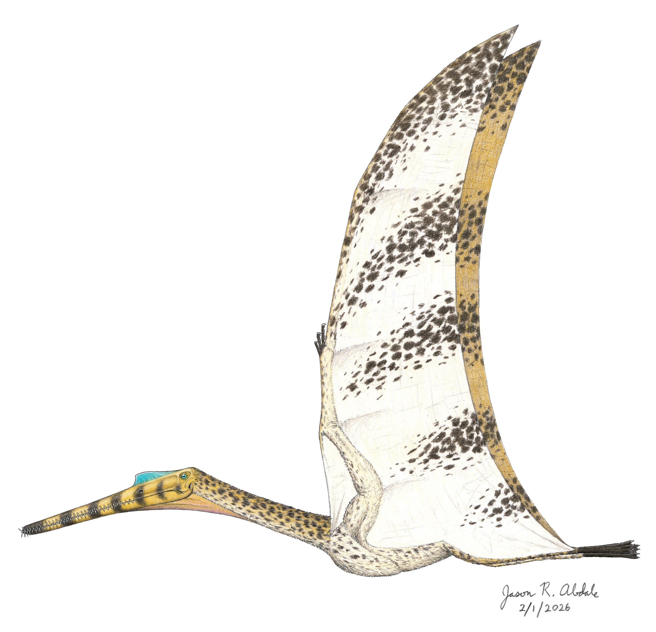Then in 1999, it was proposed that Kepodactylus might be a dsungaripteroid because its humerus was similar in shape to the humeri belonging to that group of pterosaurs (Unwin and Heinrich 1999, page 134). The dsungaripteroids, named after Dsungaripterus of China, were believed to be the nutcrackers of the pterosaur world, feeding on hard-shelled animals like snails and clams. Several freshwater mollusks have been found within the Morrison Formation (Chure 2026, pages 453-454), so it’s possible that Kepodactylus ambled along the riverbanks snapping them up. In the early 2000s, there seemed to be additional evidence to back up assigning Kepodactylus as a snail-cracking or shellfish-cracking dsungaripteroid: “As yet undescribed material of Kepodactylus, including fragments of a coracoid, wing metacarpal, wing phalanges, a femur, a metatarsal and ribs also exhibits distinctive dsungaripteroid characters. It seems likely therefore that Kepodactylus belongs within Dsungaripteroidea, although its relationship to other members of this clade is still unclear. Kepodactylus is to the first record of dsungaripteroids in North America, and possibly also one of the earliest” (Carpenter et al. 2003, page 52).