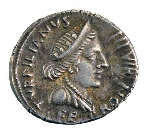 A silver denarius bearing an image of the goddess Feronia. Wikimedia Commons. https://commons.wikimedia.org/wiki/File:Feronia.jpg.