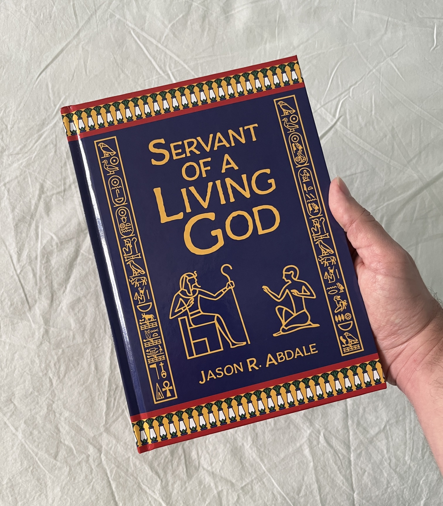 Servant of a Living God is available in e-book, paperback, and hardcover. I’m currently working on getting a special edition available with shiny gold lettering and artwork on the cover.