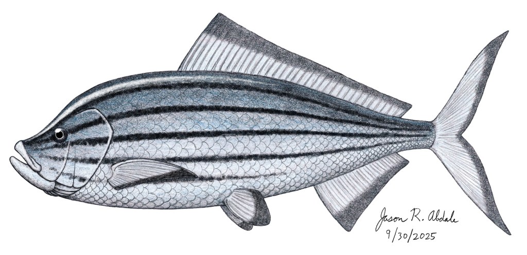 Concavotectum, which was named in 2008 from a single skull, belonged to the family Plethodidae. The plethodids first appeared during the Cenomanian Stage of the middle Cretaceous Period about 100 MYA and were abundant for the next twenty million years. However, around 80 MYA, they started to go into decline. Most plethodid fish are known from the late Cretaceous of North America, but a few are also known from the middle and late Cretaceous of Europe and Africa, Concavotectum being one of them. The plethodids had mouths which were filled with literally thousands of extremely tiny pointed recurved teeth, and it has been hypothesized that they mostly fed on plankton like a modern-day paddlefish. Most plethodids were moderately sized, averaging at about 2 feet long, but Concavotectum was three times bigger. Yet it wasn’t the largest. That honor belongs to Paranogmius, which, though known only from incomplete remains, is estimated to have measured an astounding 10 feet long.